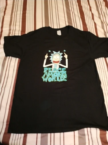 - Rick and Morty (Peace Among Worlds) Printed T-shirt. One of Talking Tees Co’s favourite shirts, ultimate comfort is achieved with this option.